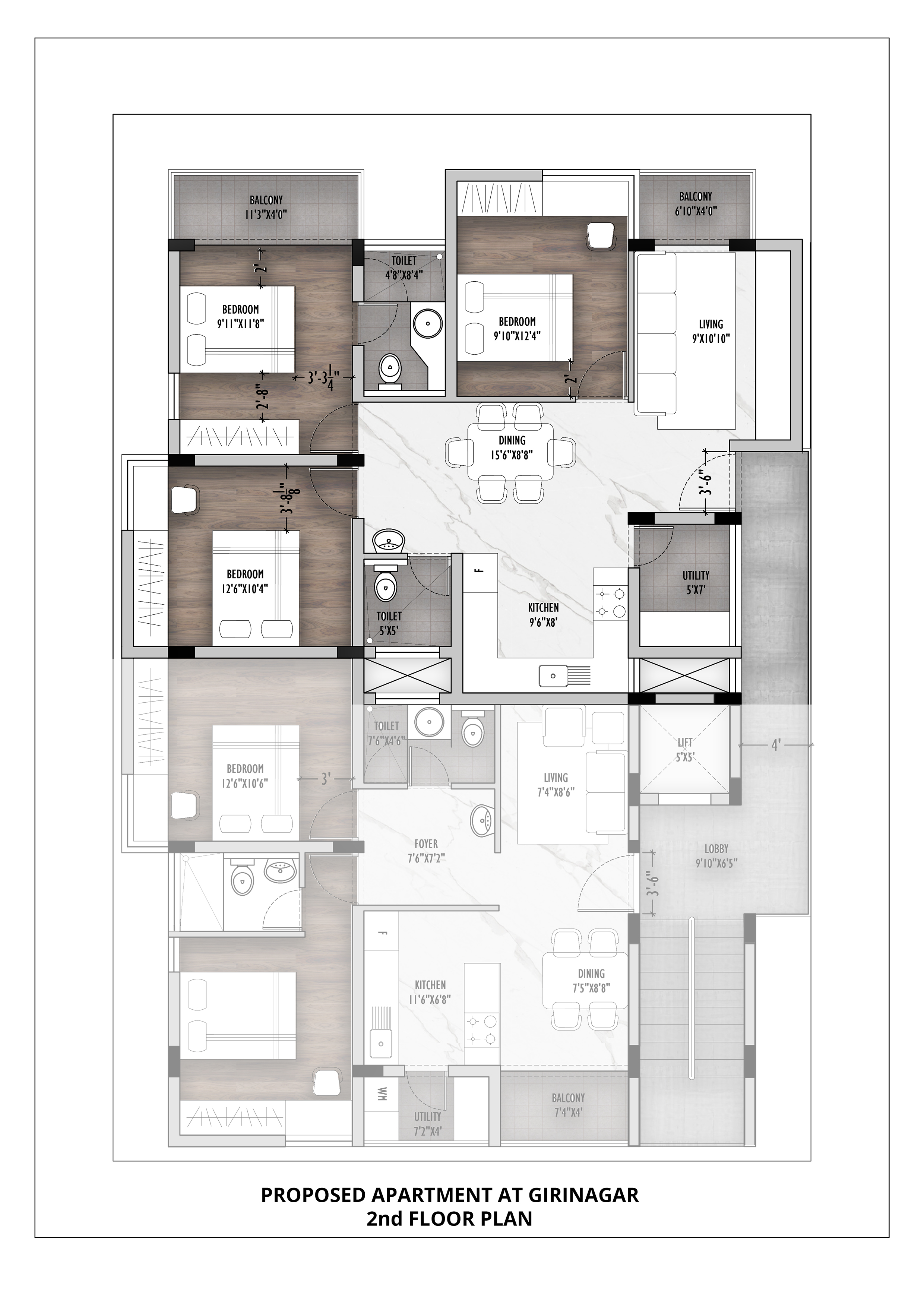 The Confluence Luxuria project represents a thoughtful approach to contemporary residential living, transforming a 1,200 square meter development in Girinagar, Bangalore into a sophisticated urban sanctuary that prioritizes both modern convenience and community wellness. This residential architecture project seamlessly blends contemporary design elements with functional living requirements, creating an environment that enhances daily life for residents while maximizing the efficient use of residential space. The design philosophy centers around creating distinct zones for different aspects of urban living, from private residential units and shared amenities to landscaped common areas and social spaces, each carefully crafted to enhance the living experience through thoughtful lighting, materials, and spatial flow. The project demonstrates how residential developments can transcend traditional apartment aesthetics to become welcoming environments that celebrate community living and promote well-being through design.