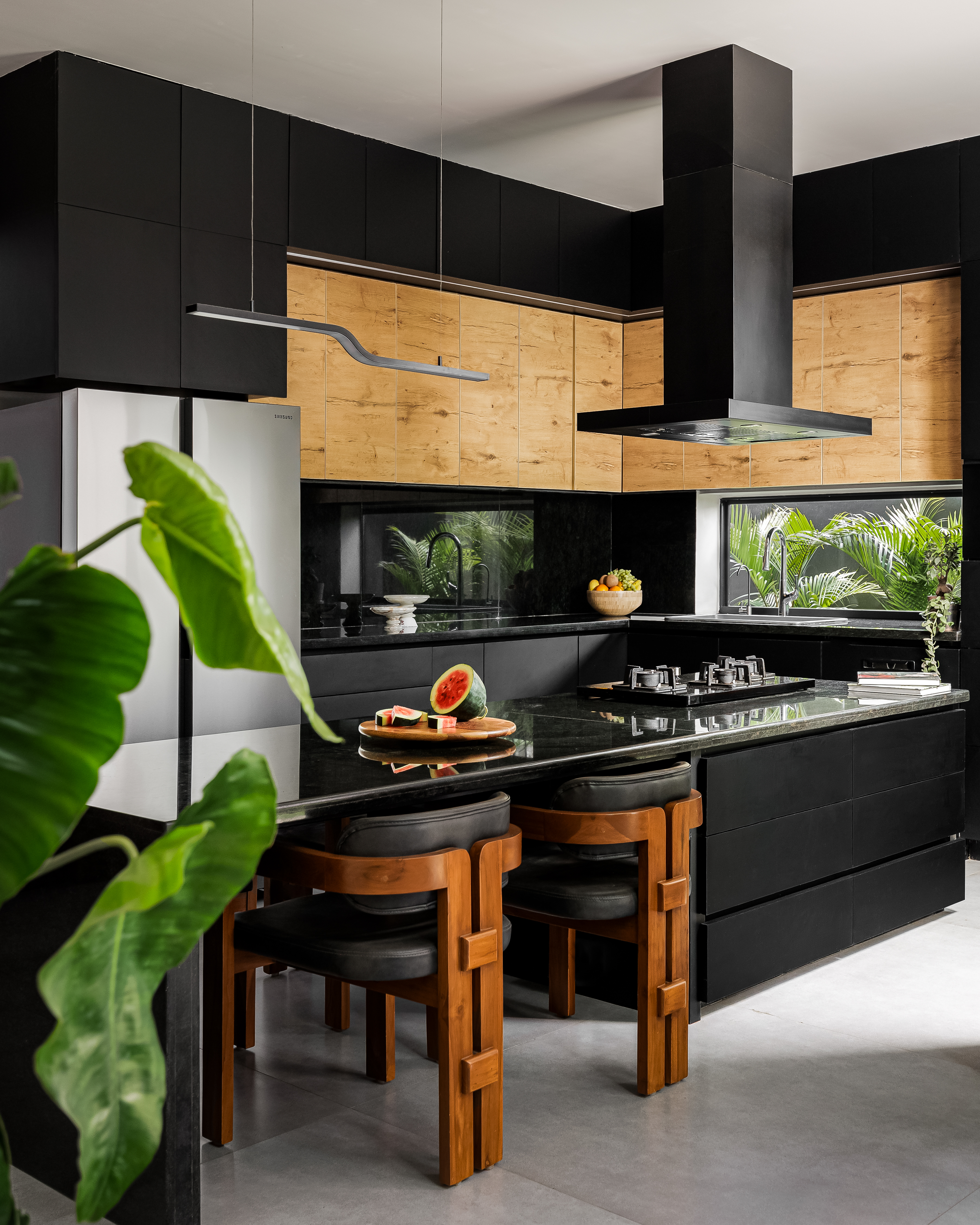 Throughout the house, pockets of greenery are strategically placed, establishing a cohesive bond between the interior and exterior environments.
